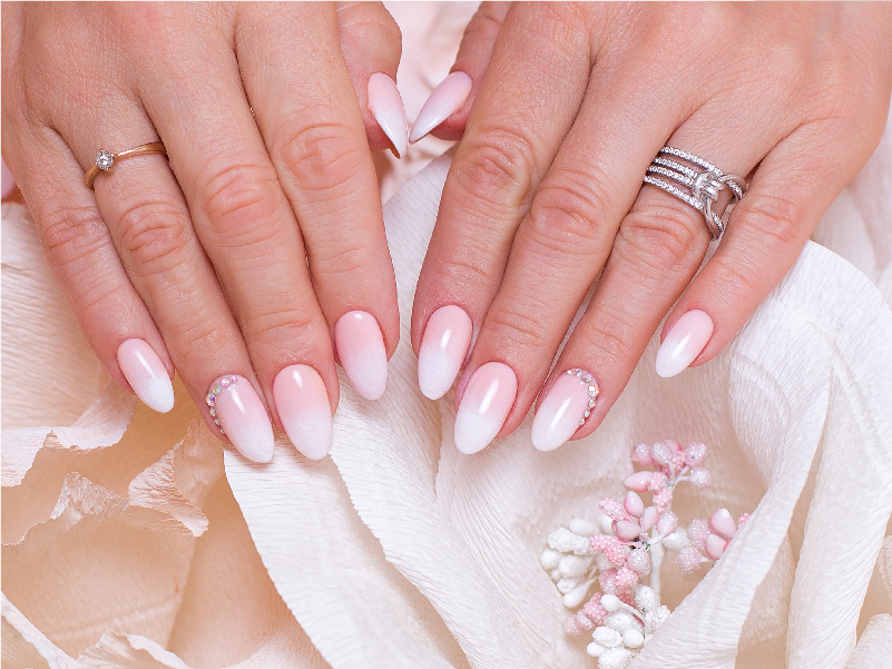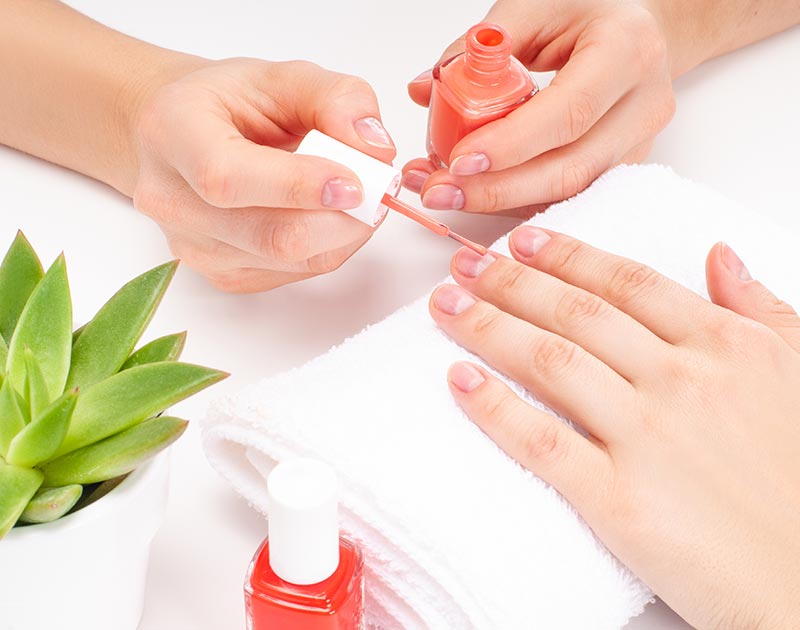 Nail beauty. We offer hundreds of nail colors of various materials from dip powders to acrylics and shellacs. Whether it’s French, ombre, or cat-eye you fancy, we’ve got you covered.